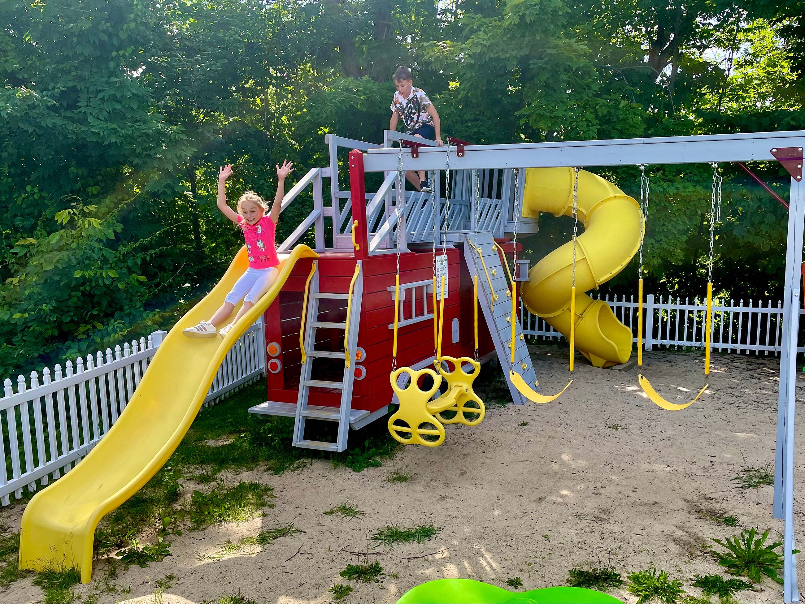 For our younger guests, we added the Fire Engine Playground that features swings, slides, and a monkey bar. It is open 6:30am to 9pm.