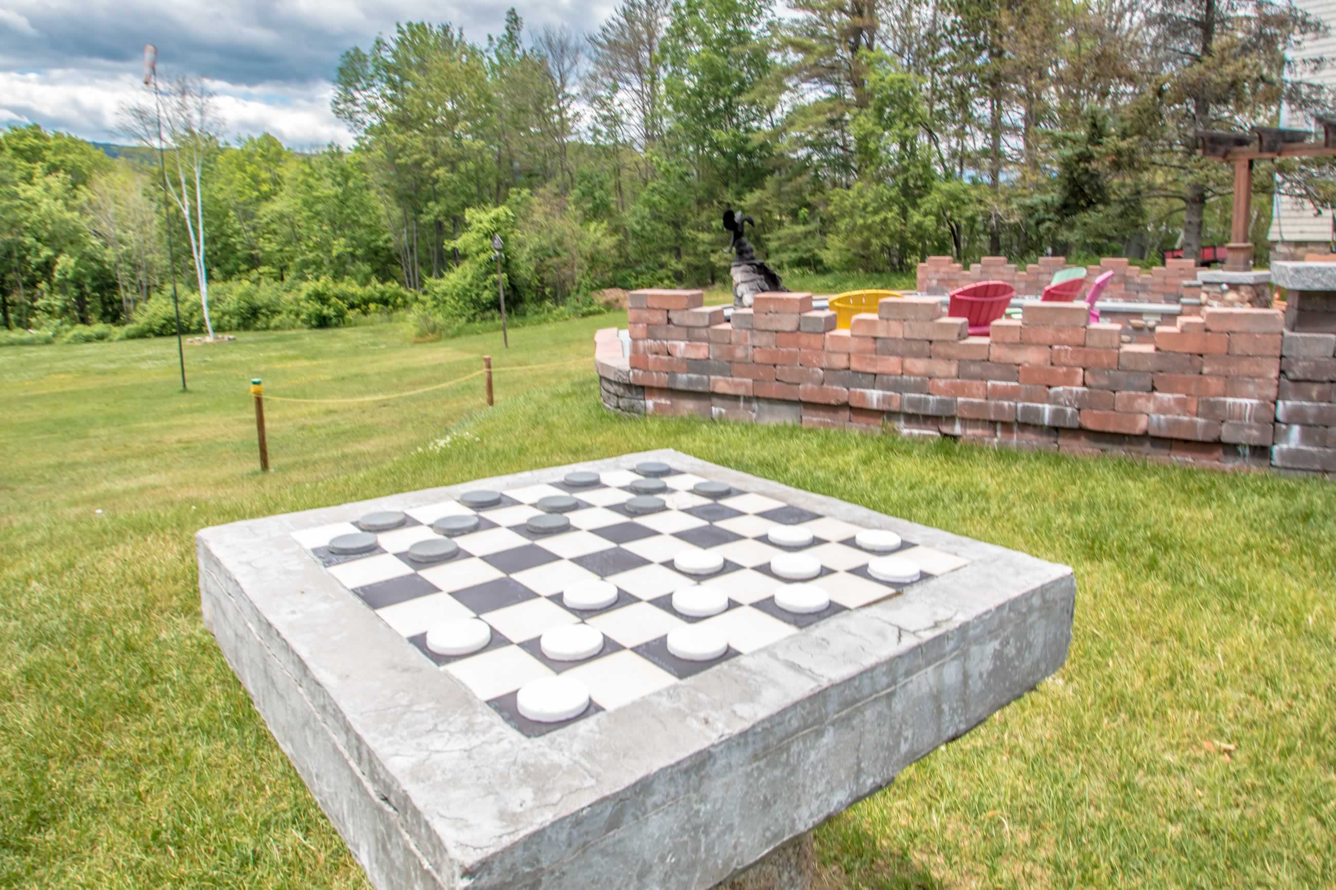 We offer joyful yard games like the Horseshoe pit, Cornhole or Outdoor Checkers (subject to change).