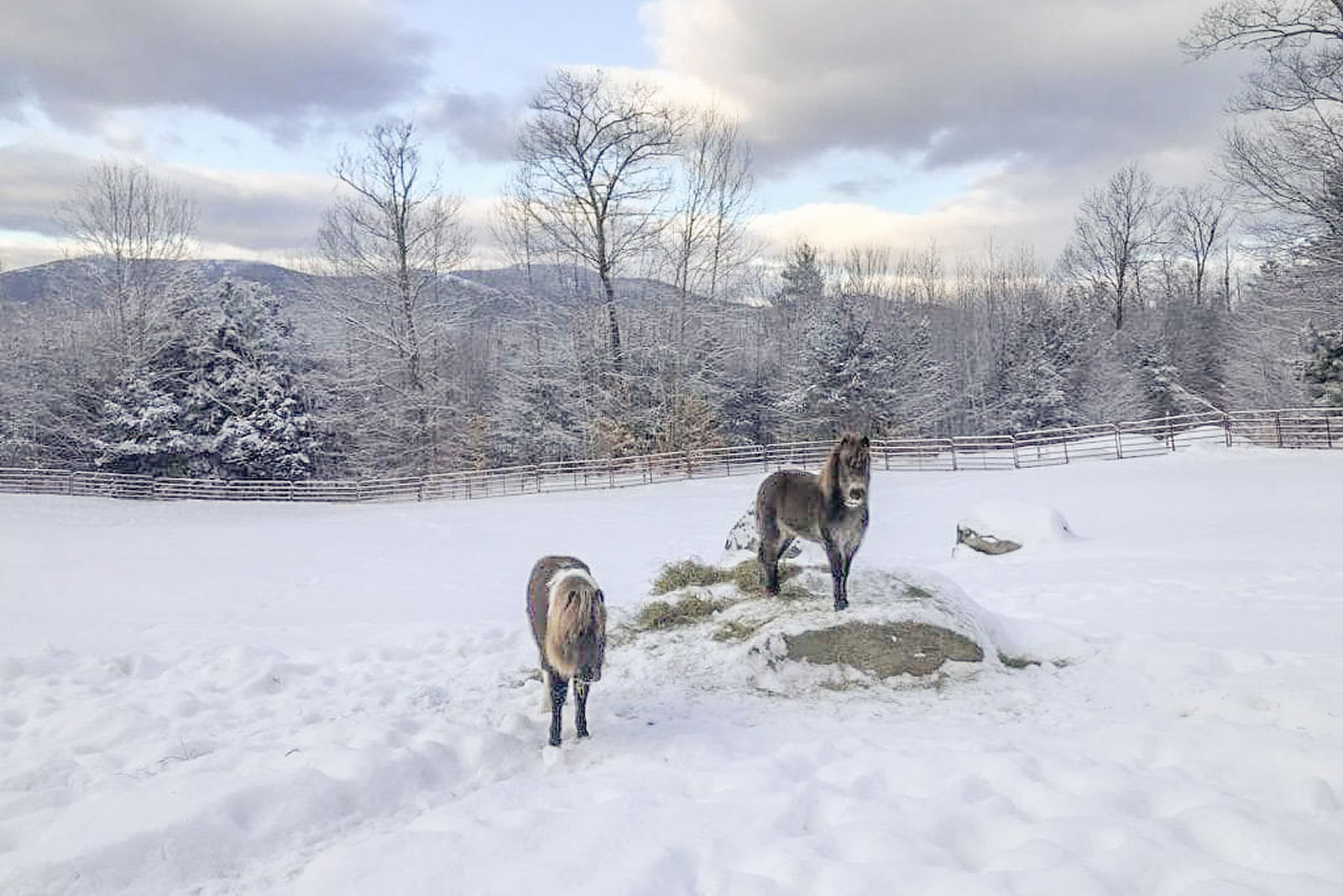Stay in a private, 40 acre, gated farm centrally located in North Conway! See our miniature horses, ducks, chickens, pigs and goats from the private, second story deck with sunset view. Guests are welcome to visit the stalls and pet the animals as well.
