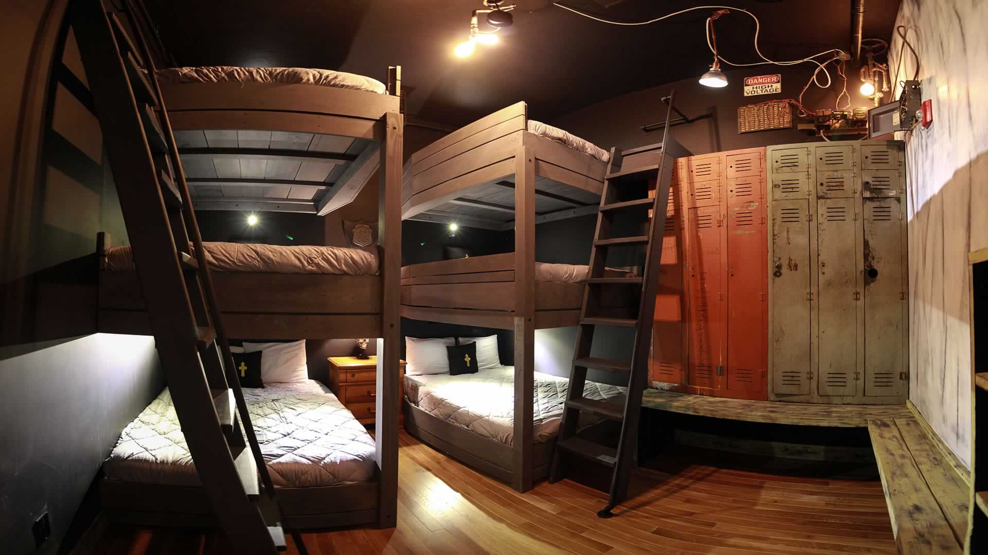 - The Dormatorium has 2 bunk beds, stacked 3 each (total of 6 queen beds).