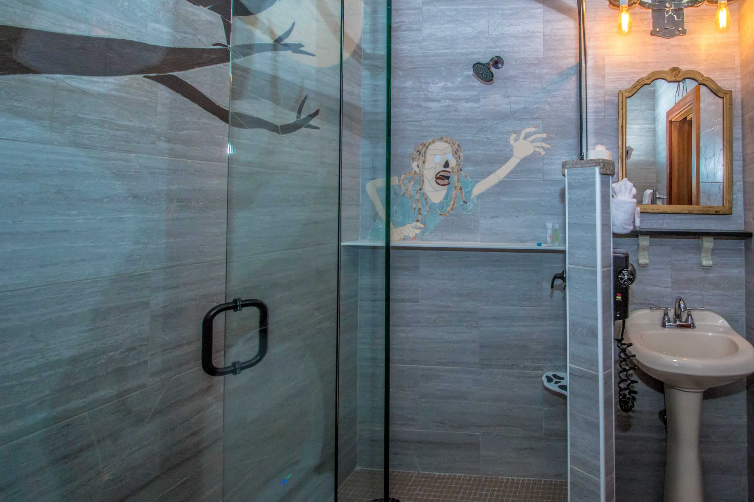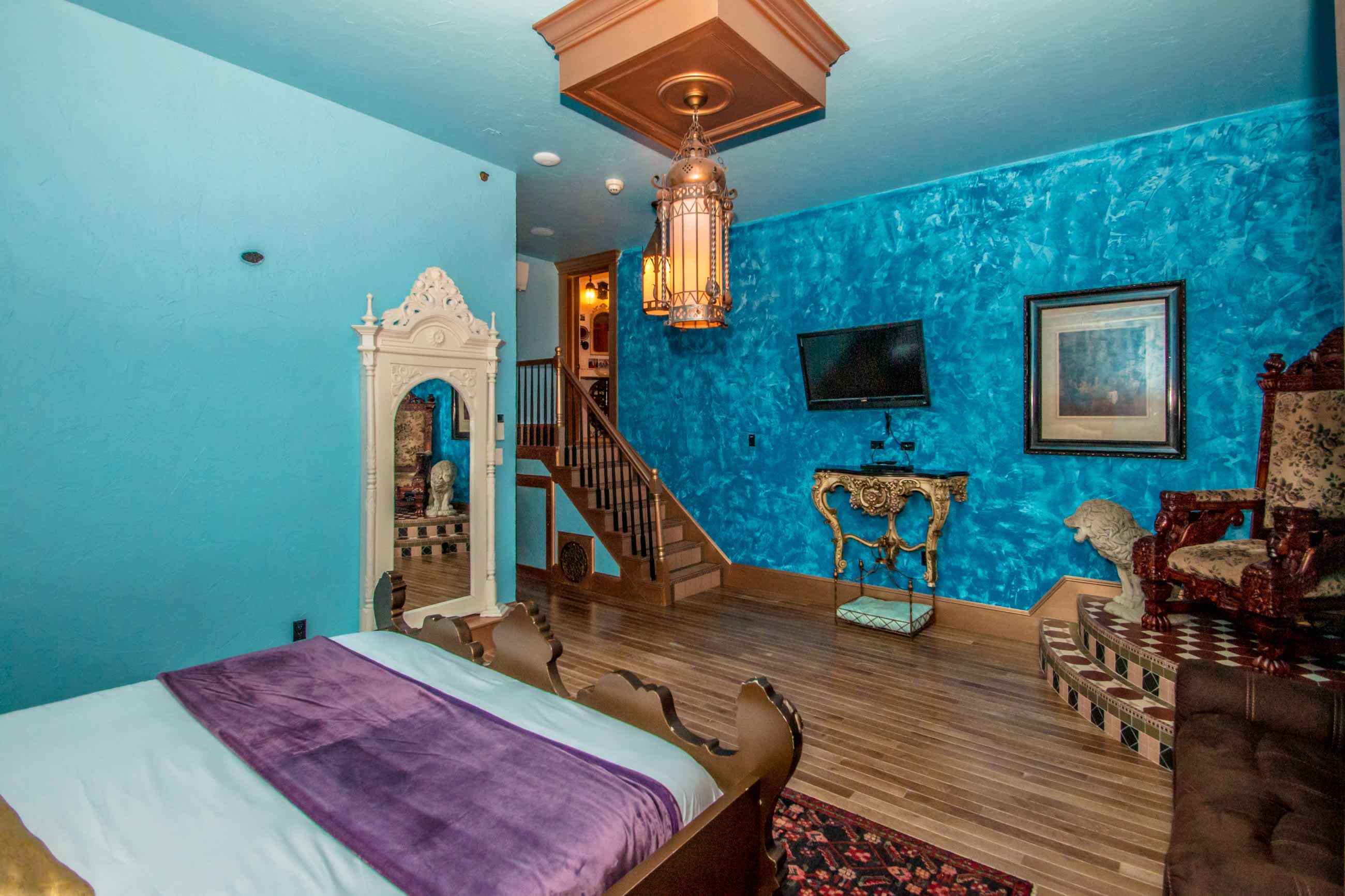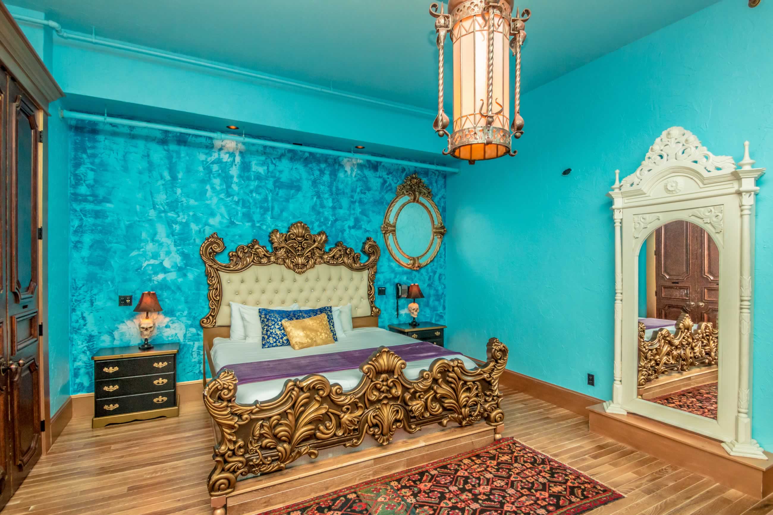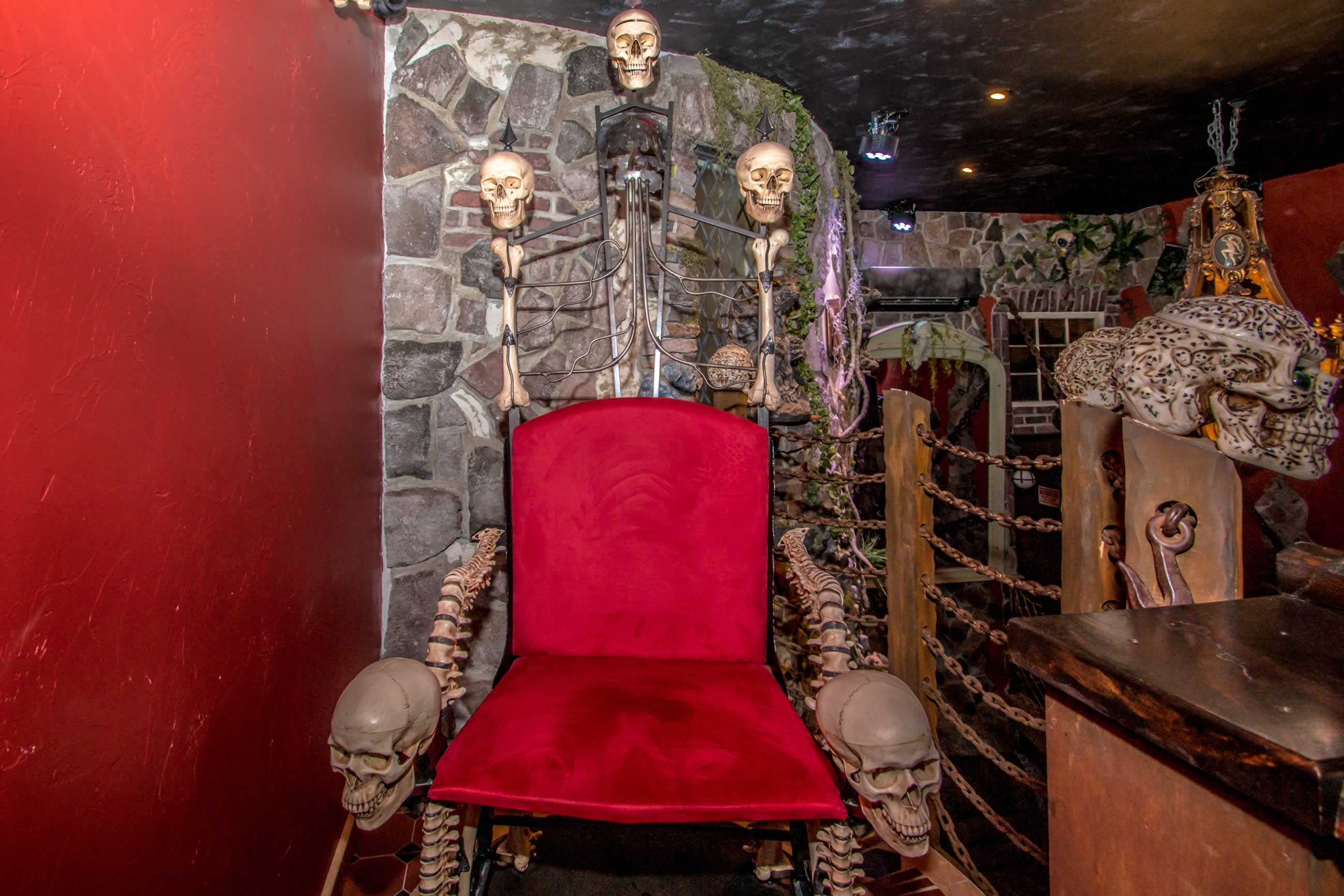 We have implemented a sophisticated computerized system involving motion sensors, time delays, video, projection, pneumatics, lights, audio, and more to scare the heck out of our guests! Nowhere in this castle is safe from a potentially terrifying scare. This is an experience of a lifetime. Be one of the first people to stay in the ONLY simulated haunted hotel suite in the universe, and prepare to be amazed!