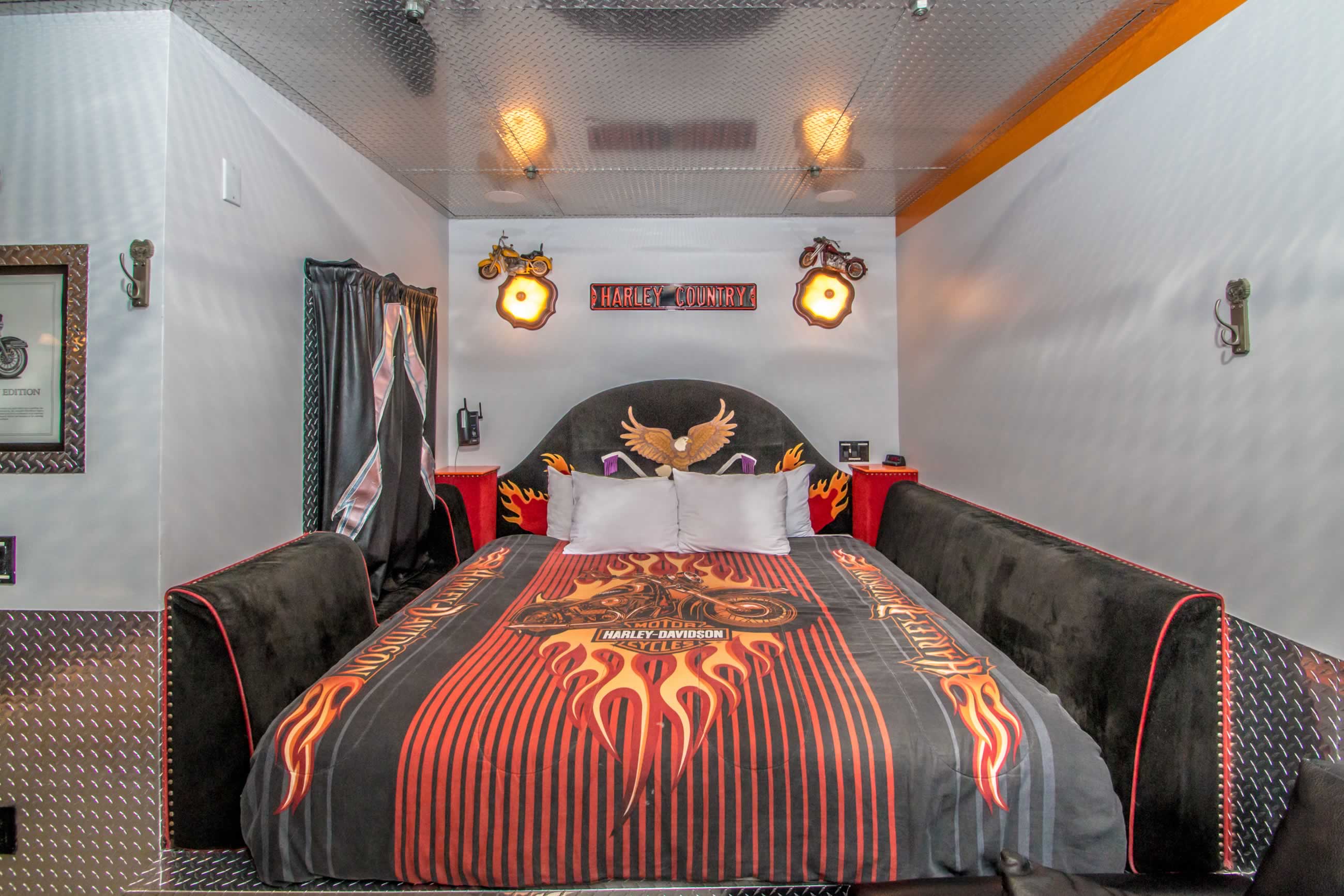 Spend your vacation in a diamond-plated suite dedicated to the classic American motorcycle—The Adventure Suite custom-made for the bike enthusiast. Gather your family and friends and live it up in luxury, Harley style. Listen to music, watch movies, kick back in the hot tub, or play some poker at the genuine Harley Davidson poker table.