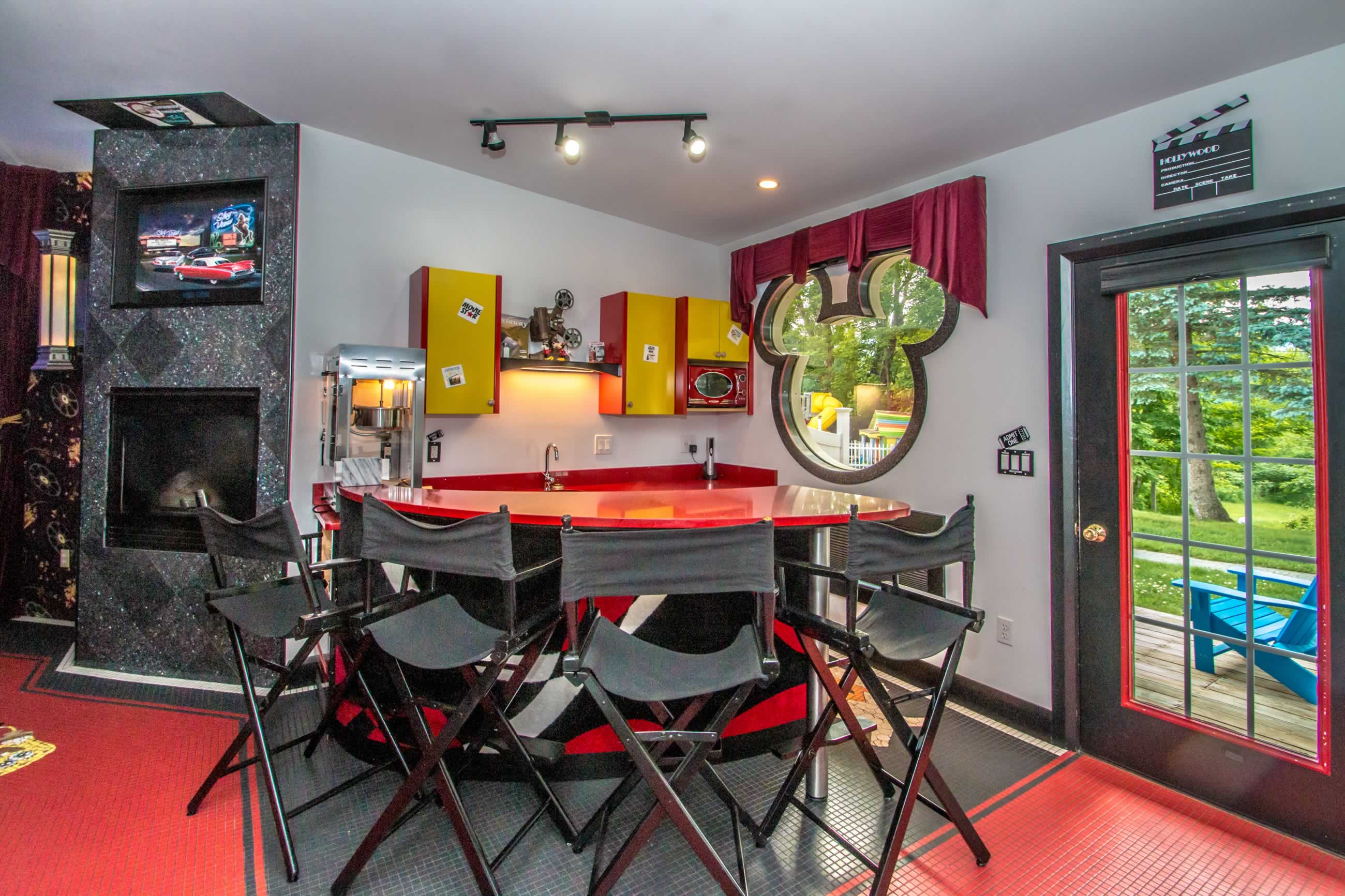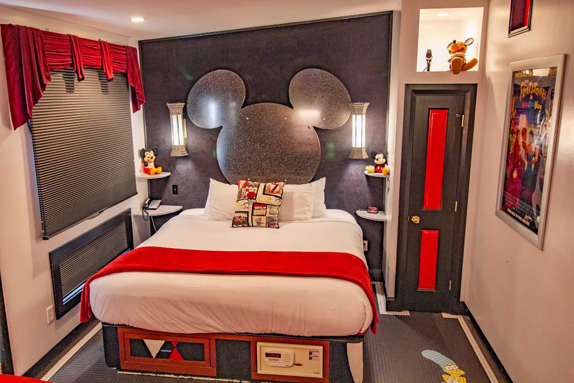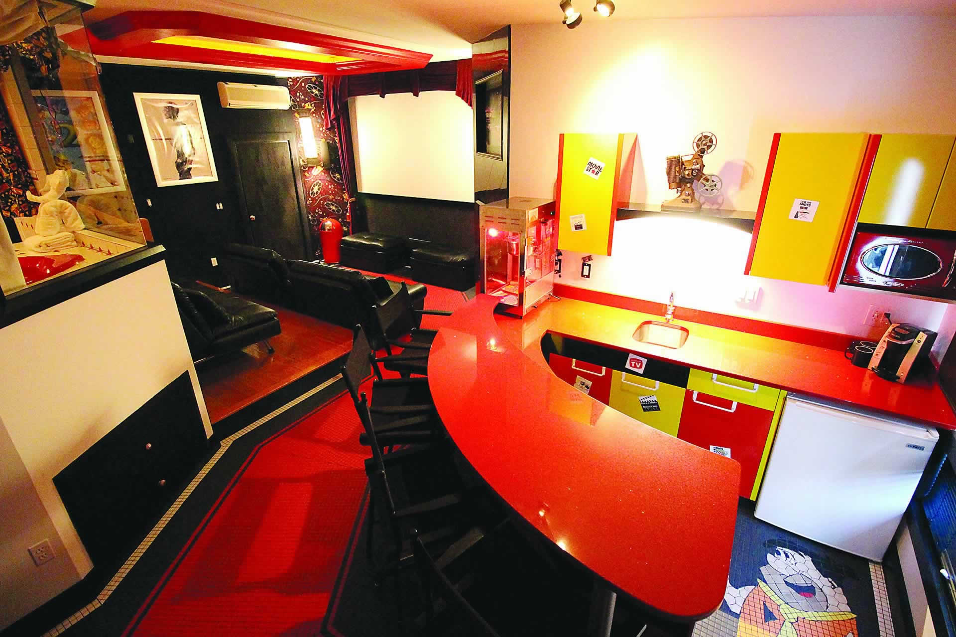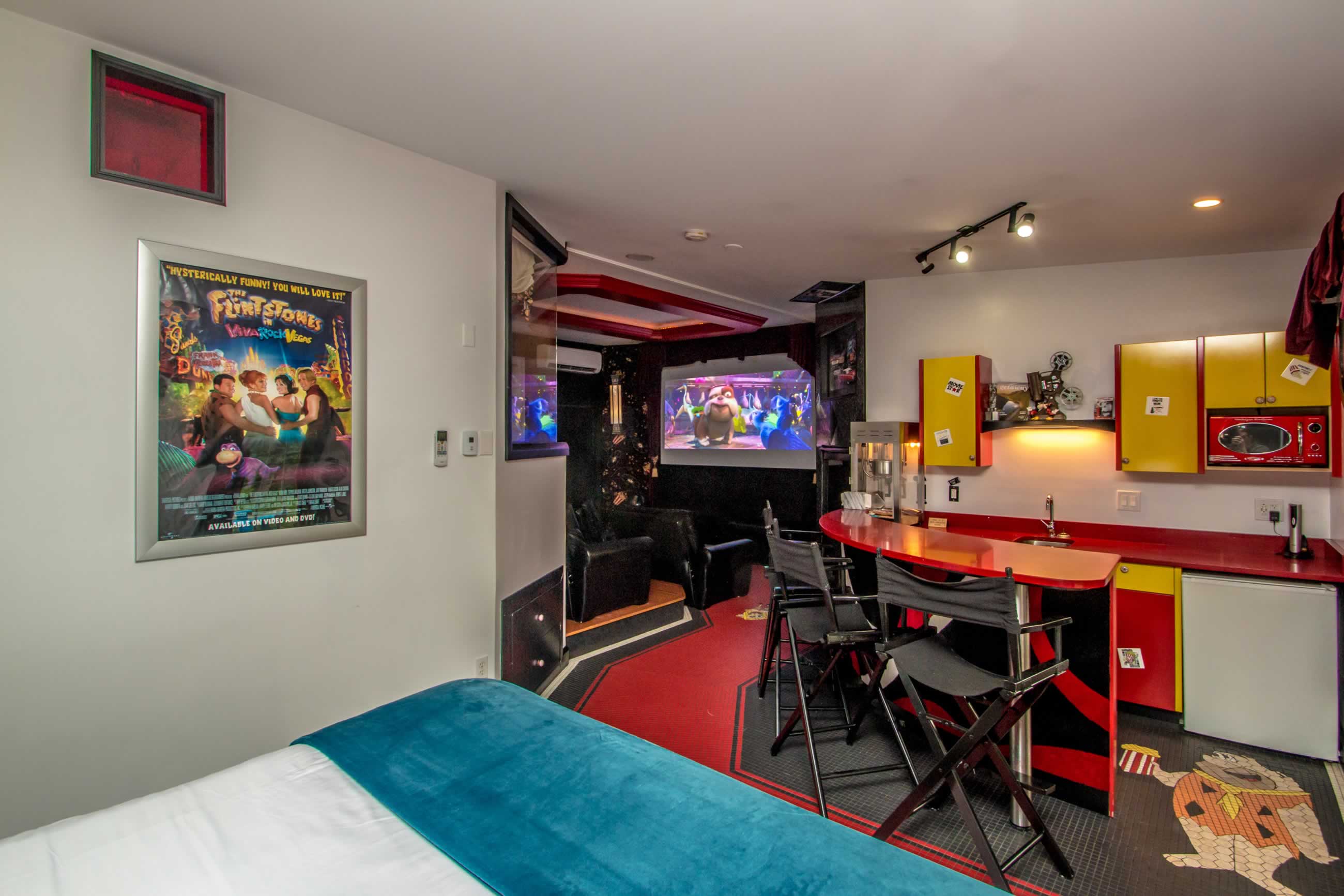 Spend your vacation with Mickey Mouse, Betty Boop and your favorite movie icons when you stay in the Showtime Suite. Have a movie marathon with your family and friends or a cozy holiday with your favorite movie buddy. Enjoy the luxury of the 10-foot projection screen, ultra-comfy theater seating, or watch from the king-size bed or jetted tub.