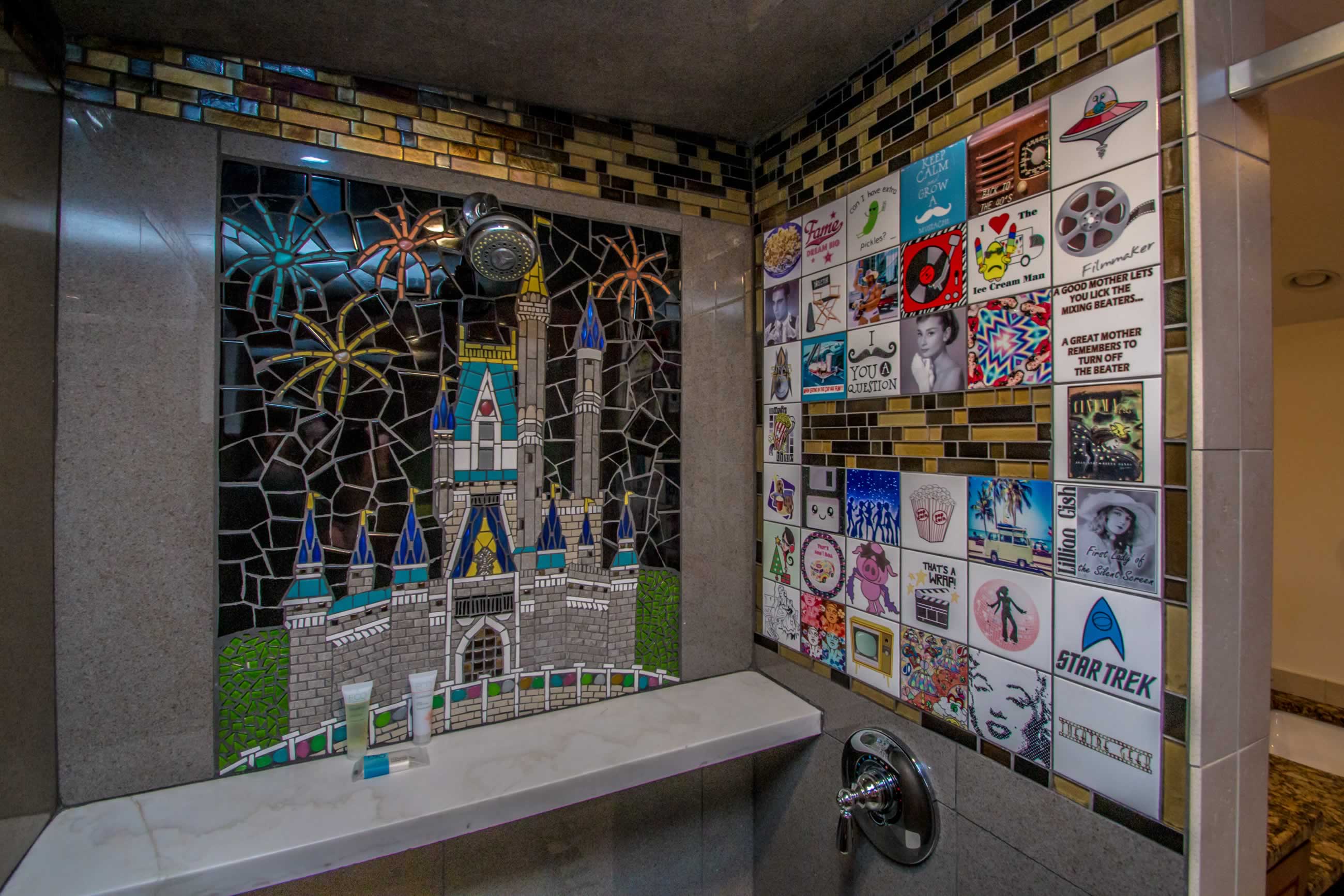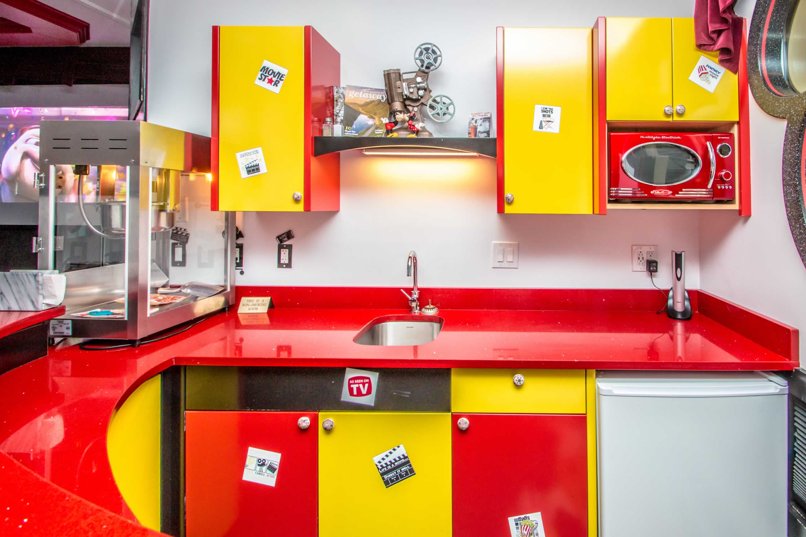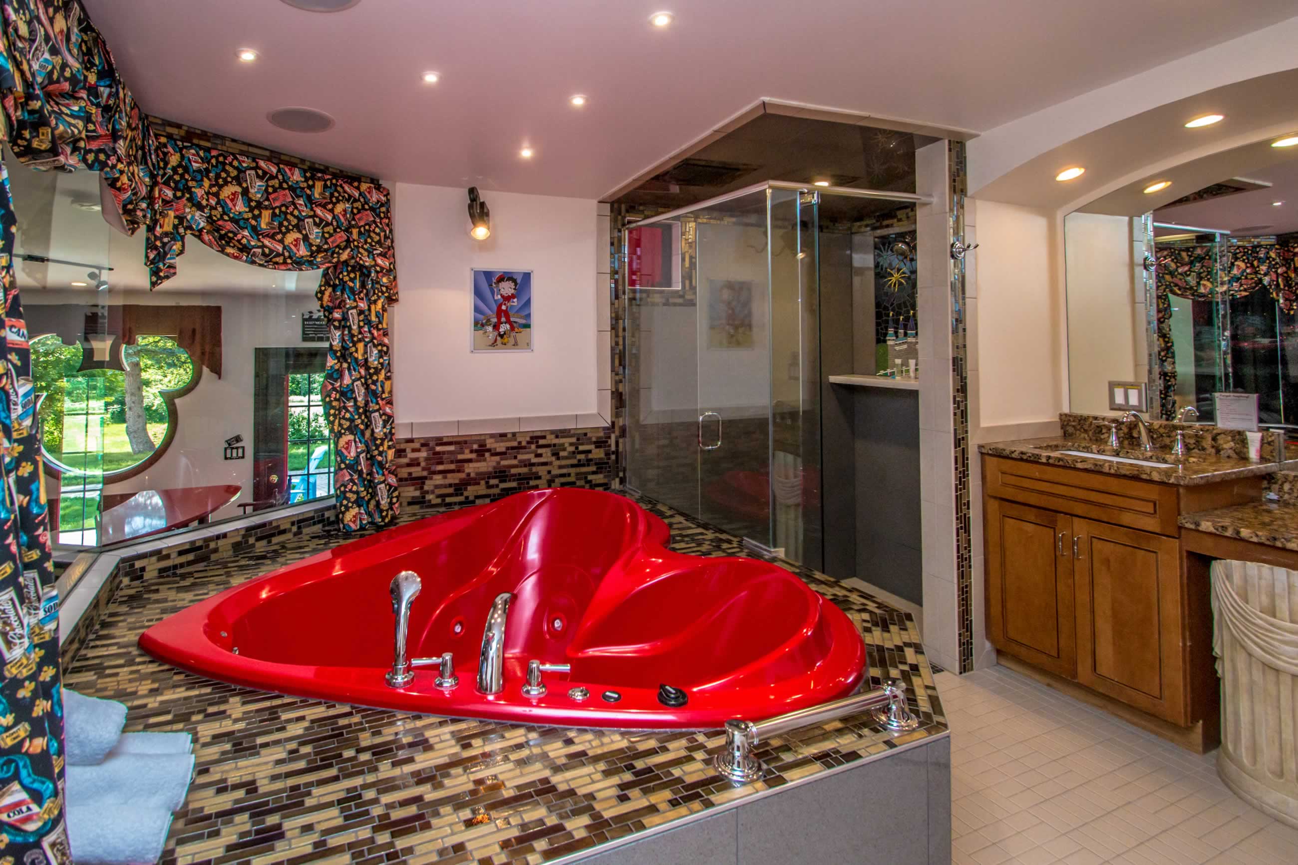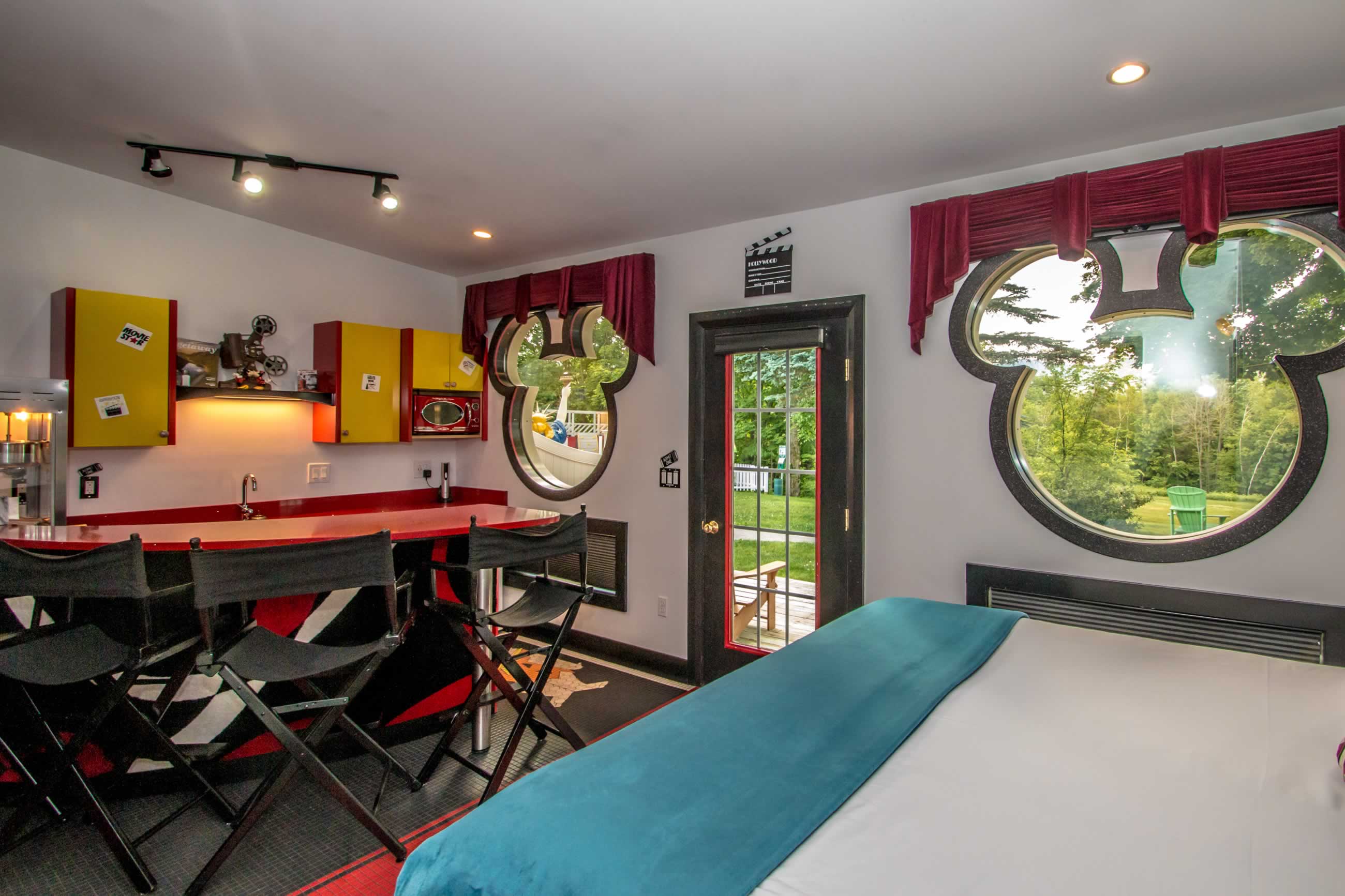 Spend your vacation with Mickey Mouse, Betty Boop and your favorite movie icons when you stay in the Showtime Suite. Have a movie marathon with your family and friends or a cozy holiday with your favorite movie buddy. Enjoy the luxury of the 10-foot projection screen, ultra-comfy theater seating, or watch from the king-size bed or jetted tub.