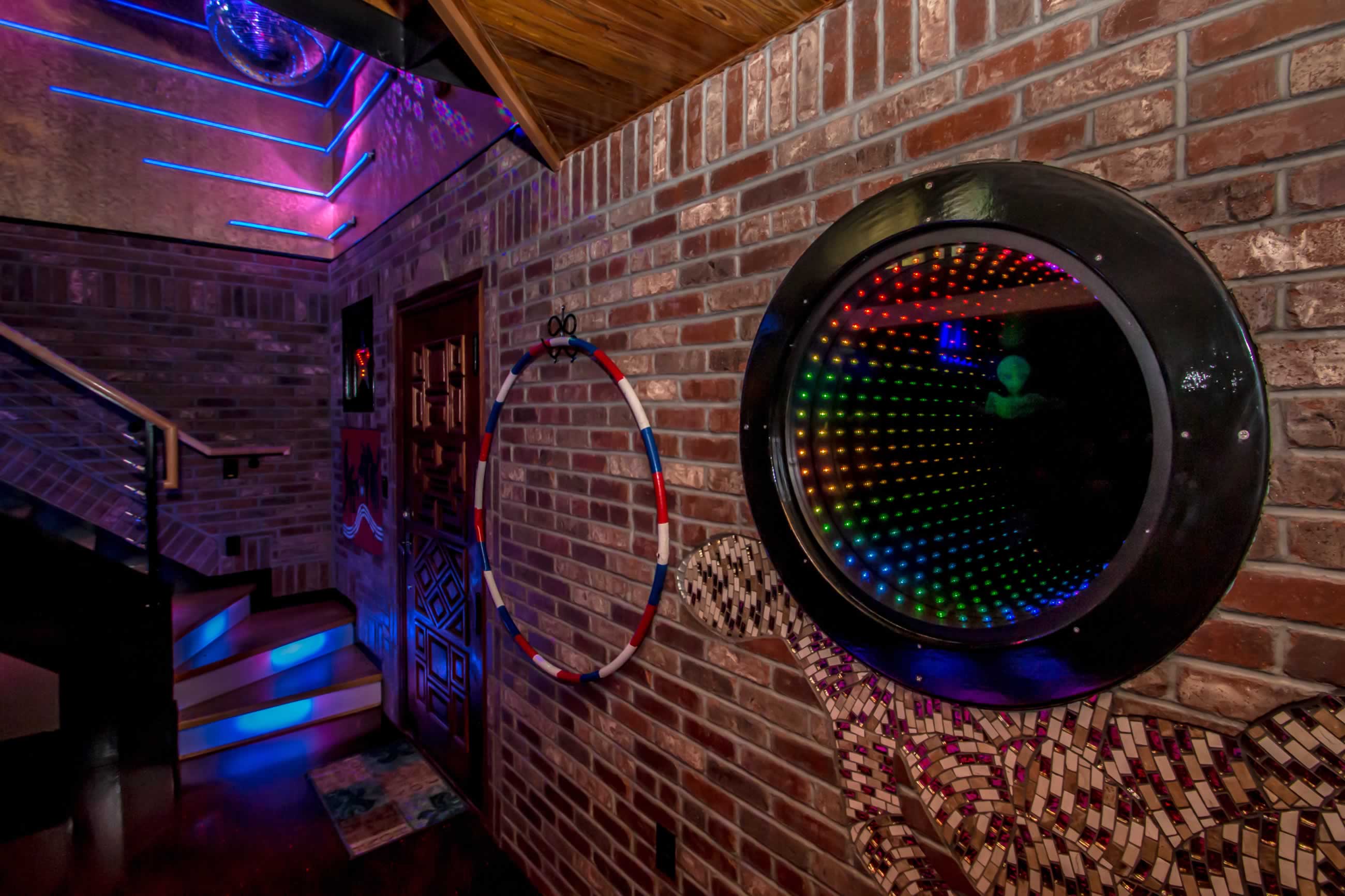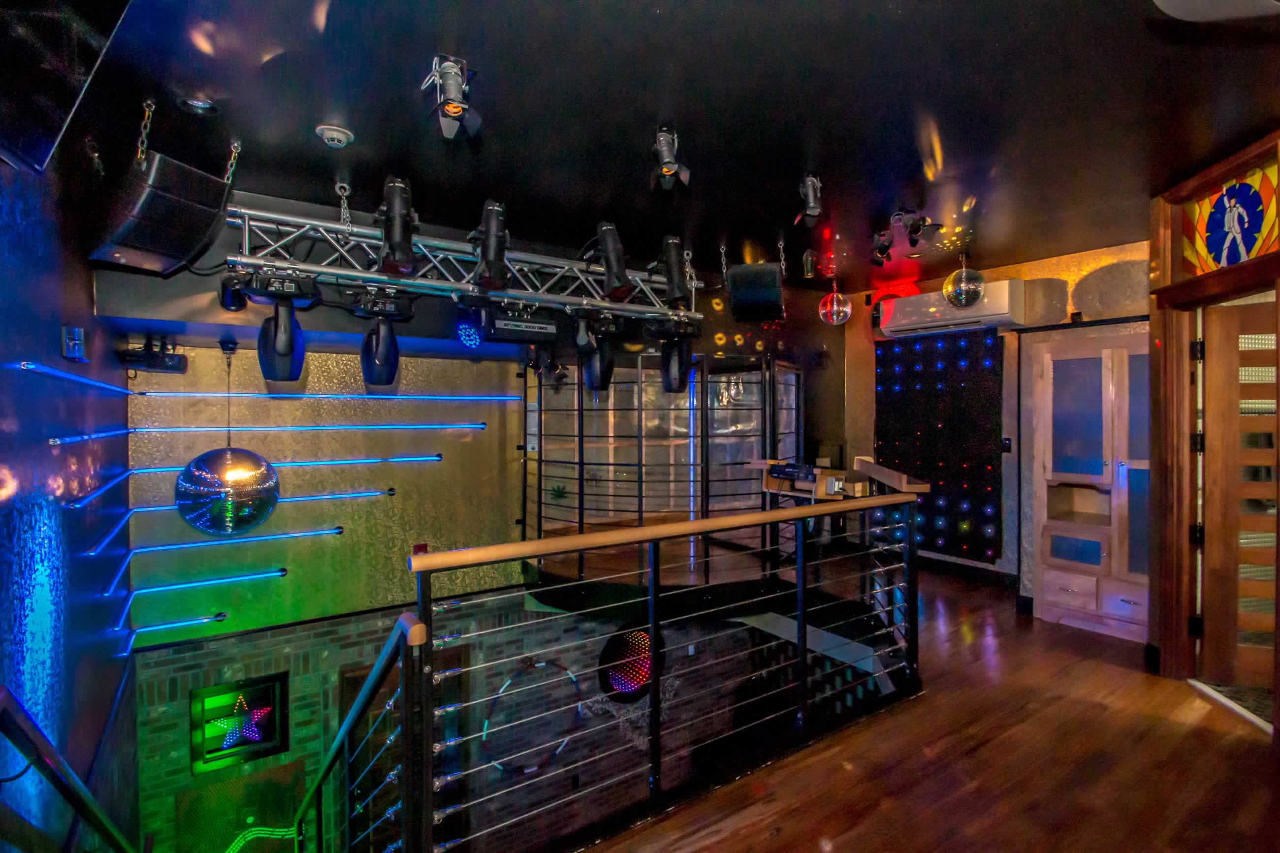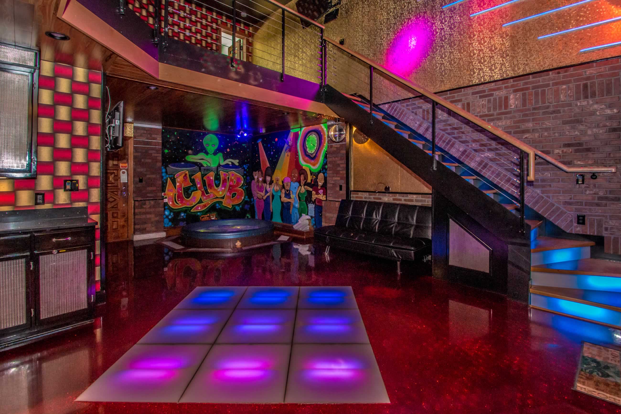 Infinity mirrors, disco balls, lighted stairs, an elevated dance cage, and more—you have to see it to believe it!