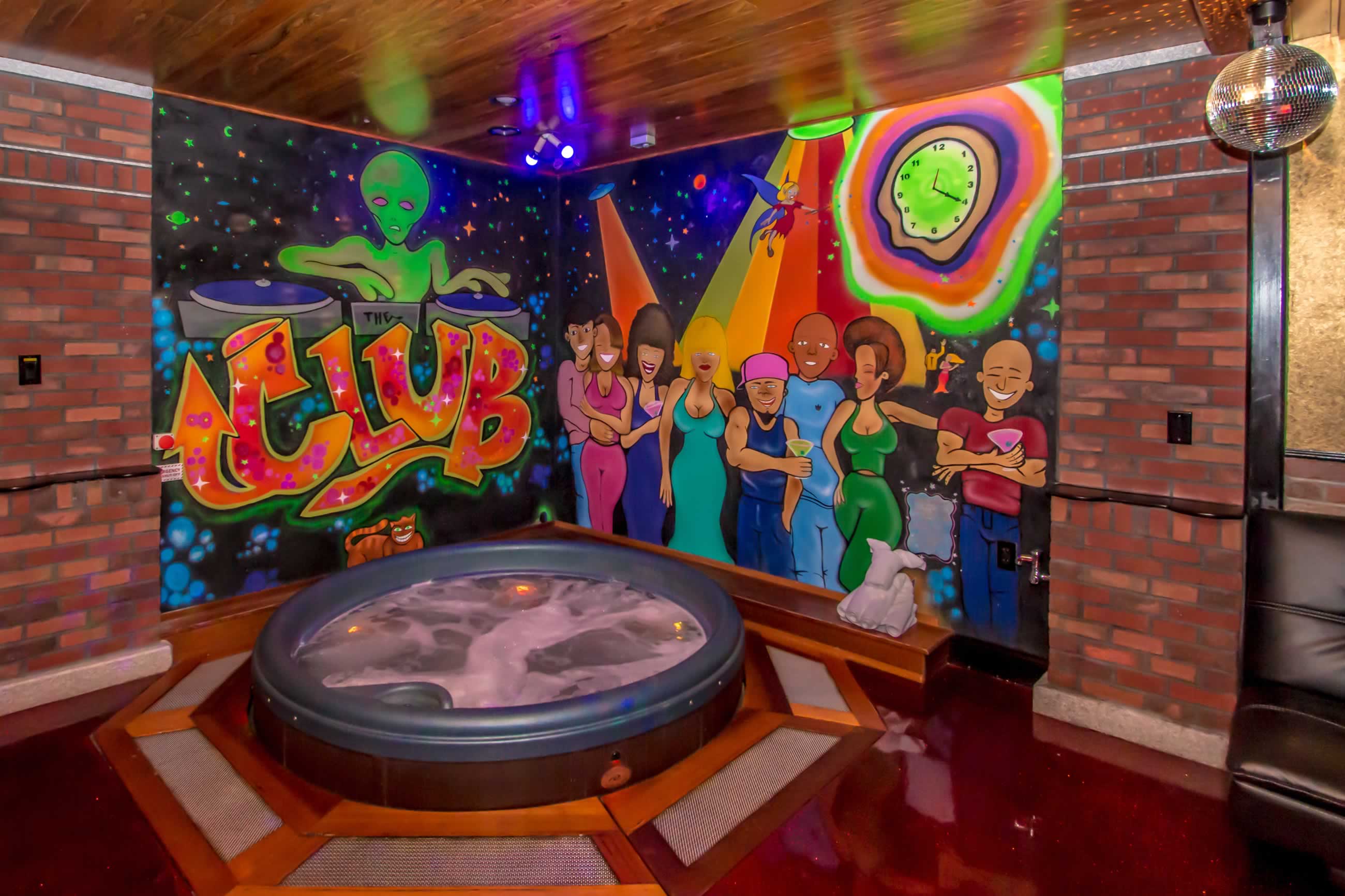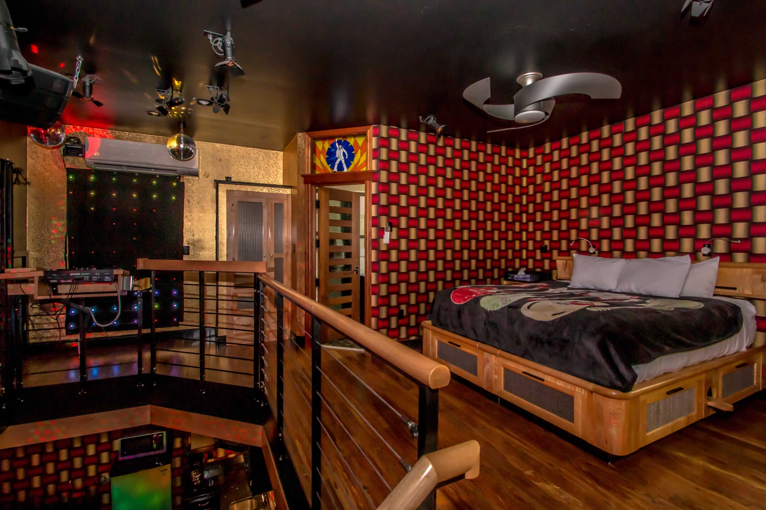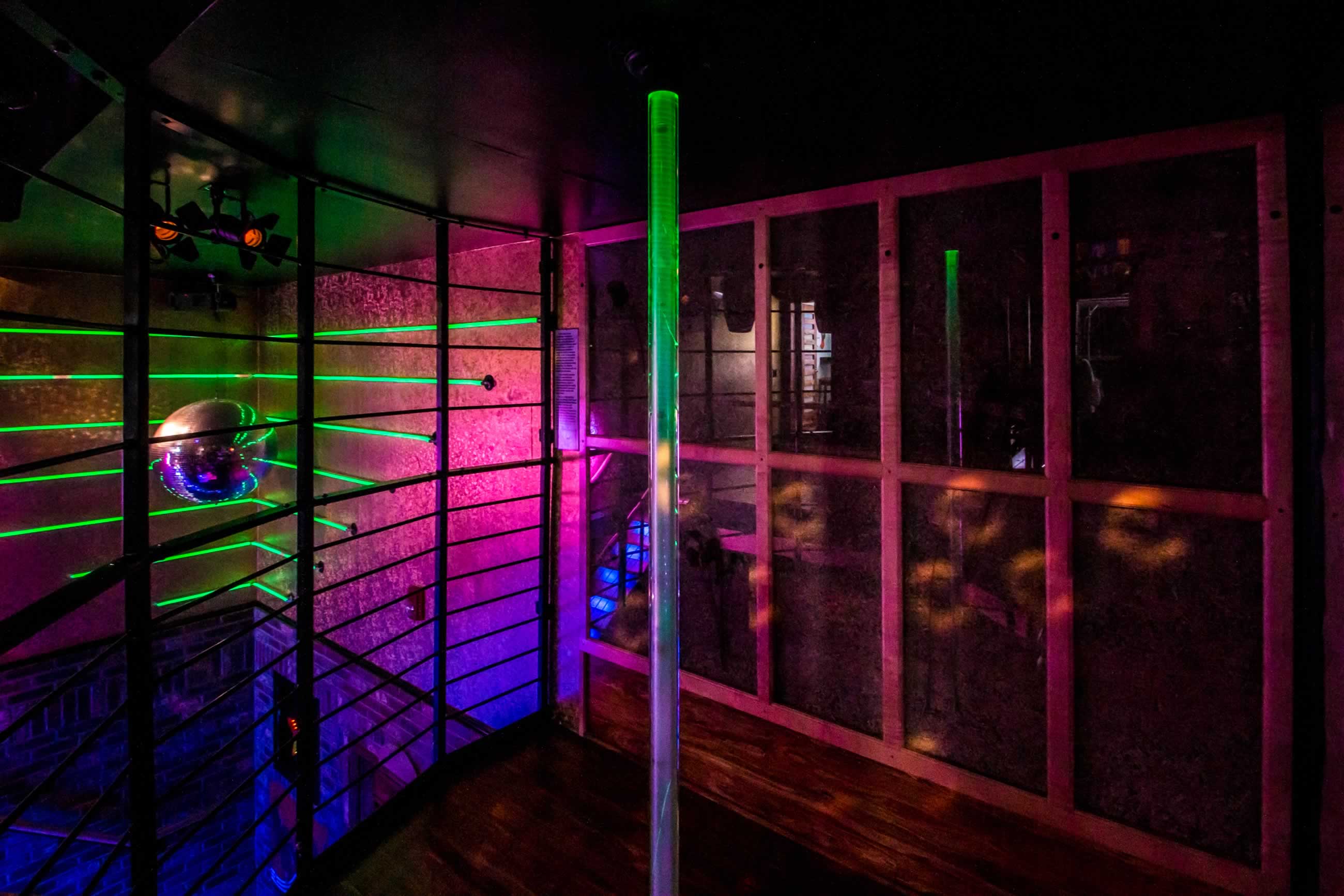 Infinity mirrors, disco balls, lighted stairs, an elevated dance cage, and more—you have to see it to believe it!