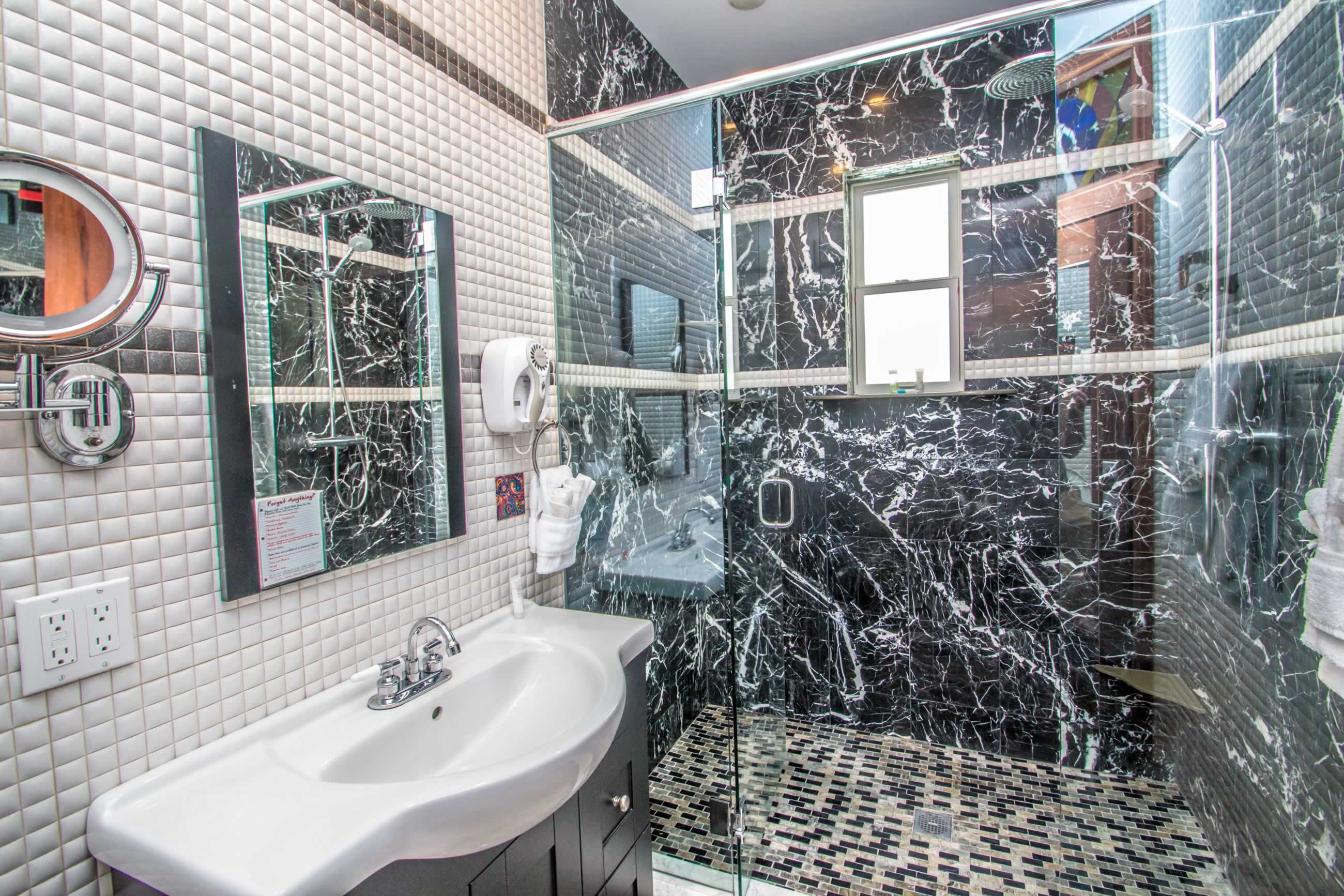 - Two Bathrooms: the Elton John and the John Travolta. Both ultra-custom bathrooms include Toto toilets, double shower heads and amazing tile work. The John Travolta also features a view of the mountains, a television and a towel warmer.