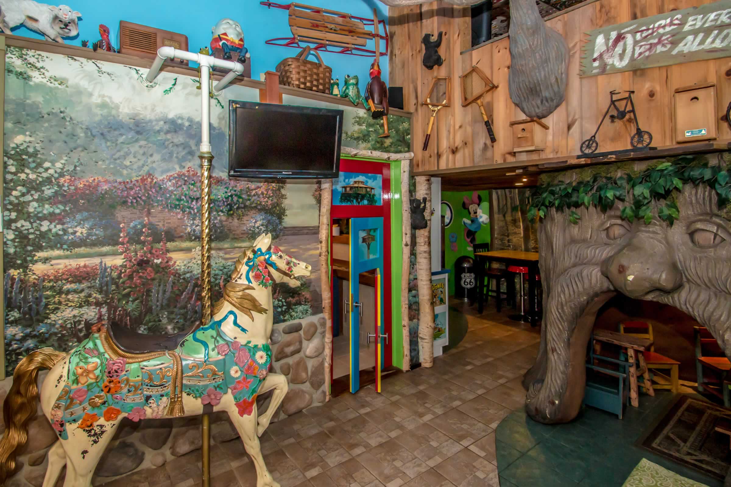 Discover the loads of kid-friendly features including a miniature three-way doorway from England, favorite animated characters, a carousel horse you can ride and more. Kick Back in the Ultimate Kid-Friendly Back Yard Hideaway! Recommended for children ages 1 to 12.
